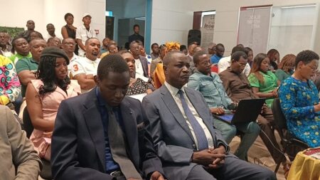 Une forte assistance pour la présentation  (1) du livre du Pr Steeve Nzegho Dieko (2),.