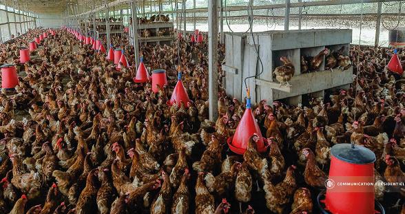 La ferme compte à ce jour 6 000 poules pondeuses, pour une production quotidienne de 5 400 œufs, soit un taux de ponte de 90 %, générant un chiffre d’affaires annuel estimé à 240 millions de francs CFA.